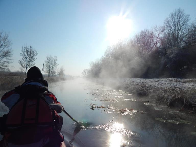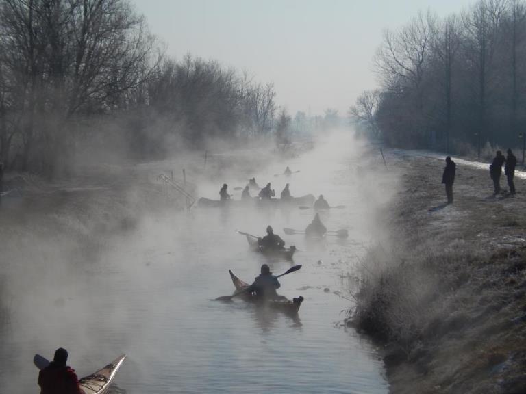 Keď vidíte v januári niekoho s pádlom, neznamená to žiadnu diagnózu. Podobne ako vtáci, tak aj niektorí vodáci sa sťahujú do teplých južných krajín. Konkrétne aj členovia našej lodenice sa vydali už po druhý krát do Maďarska splavovať potok vytekajúci z termálneho jazerav Hevíz. Hoci je Maďarsko známe miernejším, až teplejším podnebím, tentoraz nás privítalo poriadnou zimou. Pri rannom nástupe na vodu teplomer ukazoval minus 9 stupňov. Krásne slnečné počasie a bezvetrie však vodákom prialo a pri 12 km plavbe nikto nepremrzol. Trošku omŕzali prsty pri naväzovaní mokrých lodí na vlek, ale tie sme rozohriali pri večernom kúpaní v termálnom jazere.