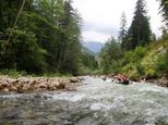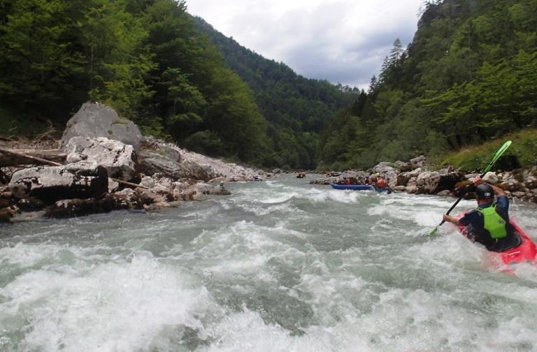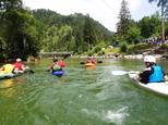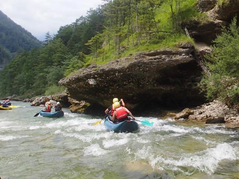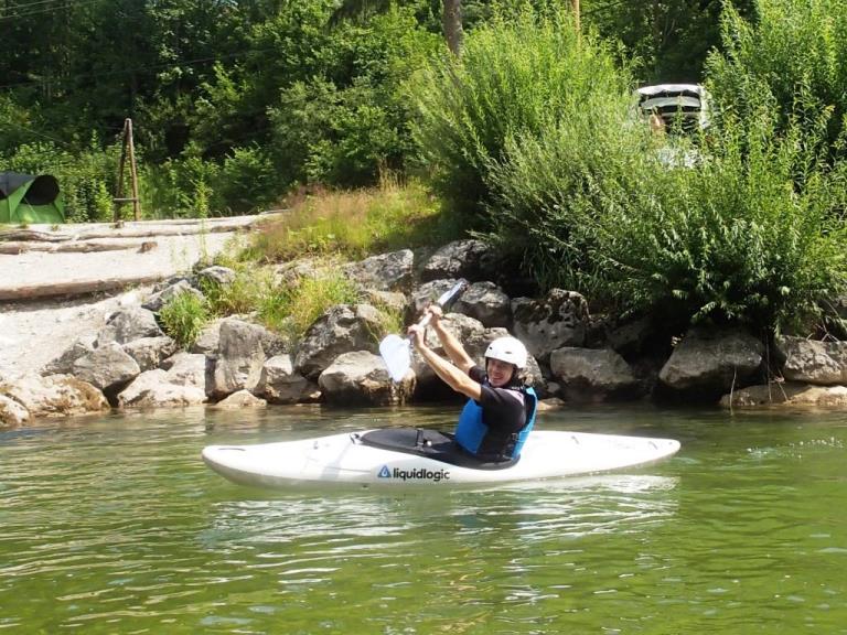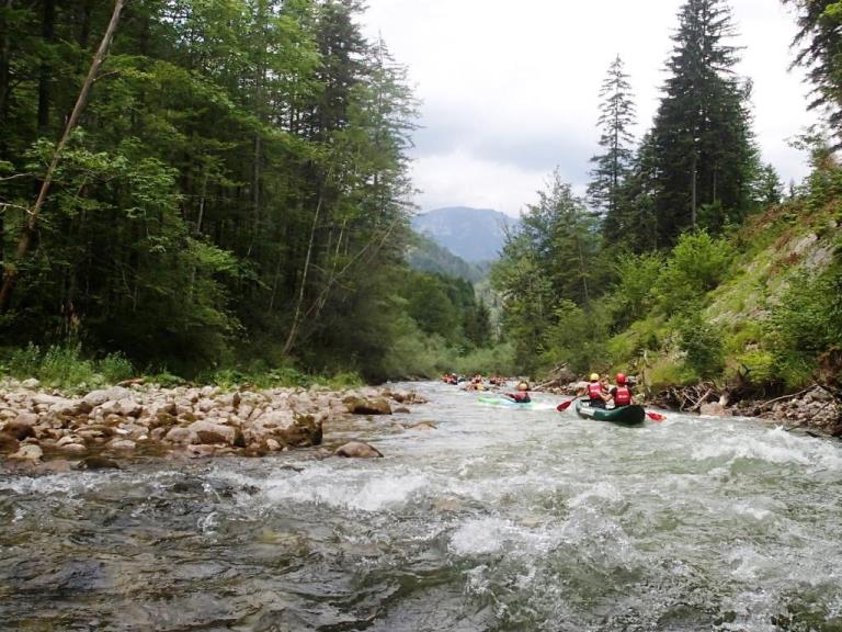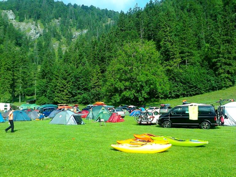 Necelých 250 km nás delí od krásneho údolia a priezračnej vody rieky Salzi pretekajúcej pod Hochkarom. Ako už býva skoro pravidlom, aj tento rok sa vodáci nášho klubu rozhodli splaviť túto rakúsku riečku. Salza svojou obtiažnosťou a prehľadnosťou je ideálna rieka pre začiatočníkov. Za každou svojou divšou perejou, alebo skokom, má kľudnejší úsek, kde sa dá eskimovať, prípadne chytiť loď a vyliať vodu z lodí, ktorých posádka daný úsek nezvládla. Trošku nás vystrašil veľký záujem a plne obsadený camping vo Wildalpene. Preto sme svoj tábor rozložili asi 3 km proti prúdu rieky nad Wildalpenom. Večer sa nás zišlo 22 účastníkov z viacerých bratislavských lodeníc. Sobotný splav sa konal za nižšieho stavu vody, ale v celej dĺžke od táboriska až pod kaňon za krásneho slnečného počasia. Kempová vlna (niekedy ju voláme aj vyraďovacia), lavínová perej i žumpa preverila ako vždy, naše kvality. Boli aj menšie kúpačky, ale pri horúcom počasí to bolo iba milé schladenie. Bezproblémový krst na rieke si užil aj náš nový mladý člen Andrej Matulík. V závere dal aj ohláseného eskimáka. Nedeľa nám pohrozila zamračenou oblohou a dažďom, ale už počas raňajok sa opäť vyjasnilo. Po usušení a zbelení stanov sme splavili skrátenú verziu od Lassingu až pod kaňon. Unavení, ale spokojní sme naviazali kajaky na strechy áut a po ceste zastavili na klasický wienerschnitzel. Rýchle podanie rúk, rozlúčenie a zase niekedy nabudúce.