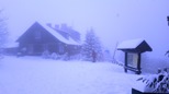 Rozlúčka s chatou bola exotická - papagájica Bibi vítala pozdravom "Čau!" každého, kto si doniesol veci do spodnej miestnosti na odvoz ratrakom.