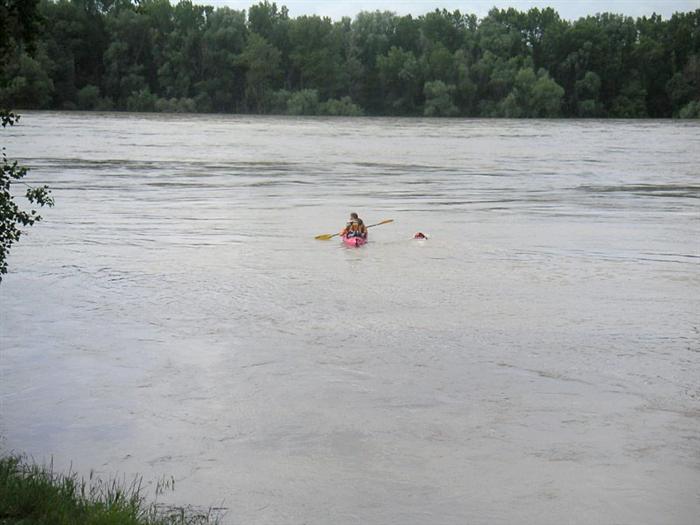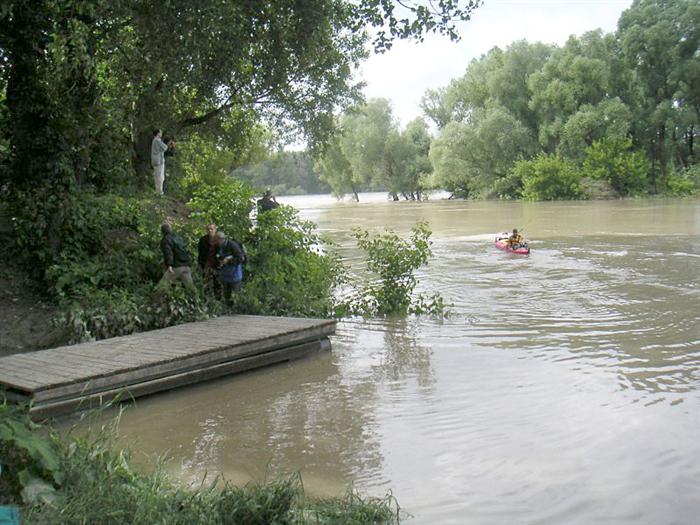 5. 6. 2006 ráno pokračuje zo zátoky za už nižšieho stavu ďalej. Sme s ňou v kontakte ešte pár nasledujúcich dní a pomáhame s radami, mapami a kontaktmi na ďalšie lodenice po Dunaji.