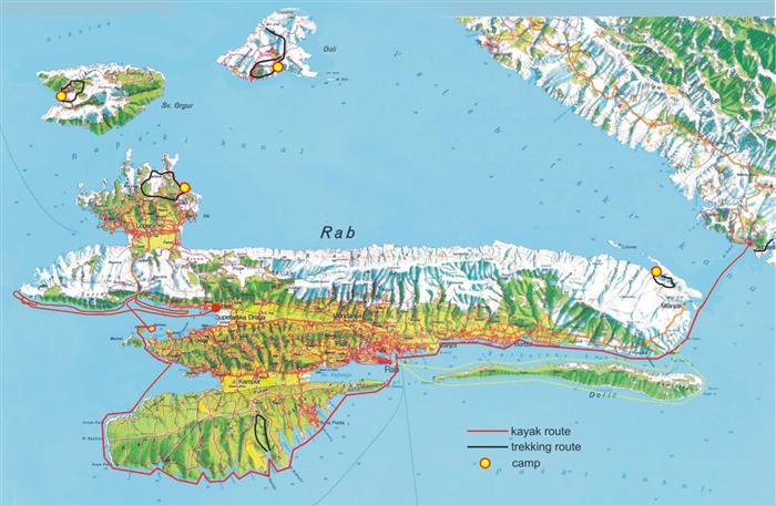 Podľa mapy sme prepádlovali 49 km, v skutočnosti asi o trochu viac. Na úplné oboplávanie Rabu nám chýbalo ešte asi 30-40 km. Rád by som to ešte niekedy dokončil.
